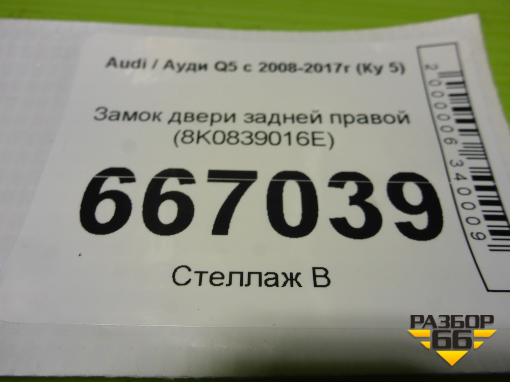 Замок двери задней правой (8K0839016E) для Audi Q5 c 2008-2017г (Ку 5) в Москве