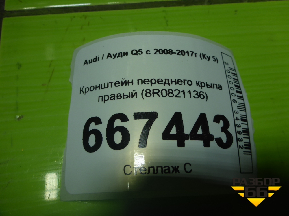 Кронштейн переднего крыла правый (8R0821136) для Audi Q5 c 2008-2017г (Ку 5) в Москве