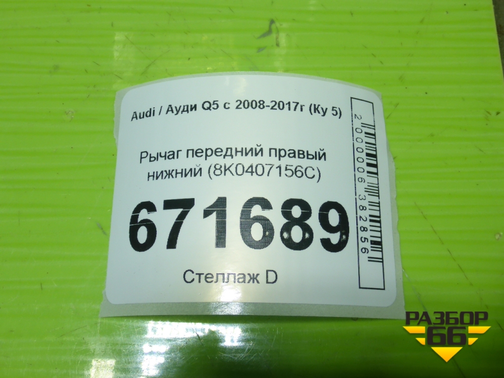 Рычаг передний правый нижний (8K0407156C) для Audi Q5 c 2008-2017г (Ку 5) в Москве