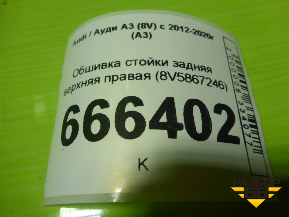 Обшивка стойки задняя верхняя правая (седан) (8V5867246) для Audi A3 (8V) с 2012-2020г (А3) в Москве