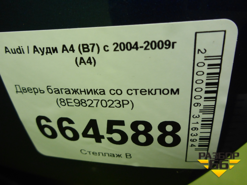 Дверь багажника со стеклом (8E9827023P) для Audi A4 (В7) с 2004-2009г (А4) в Москве