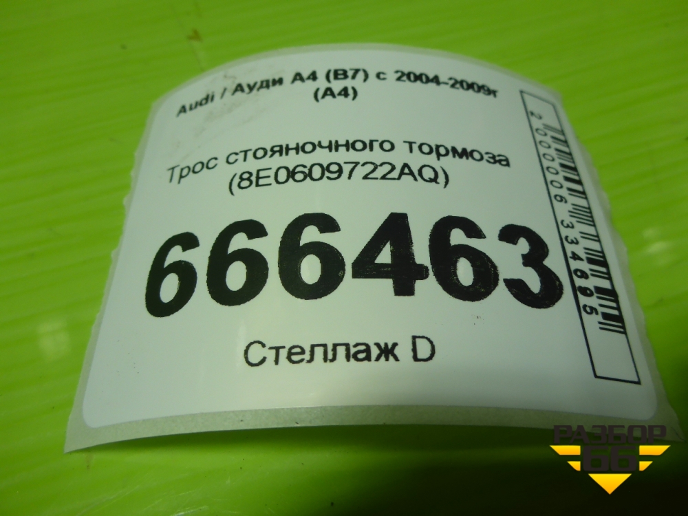 Трос стояночного тормоза (правый) (8E0609722AQ) для Audi A4 (В7) с 2004-2009г (А4) в Москве