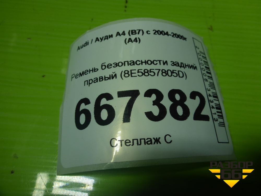 Ремень безопасности задний (8E5857805D) для Audi A4 (В7) с 2004-2009г (А4) в Москве