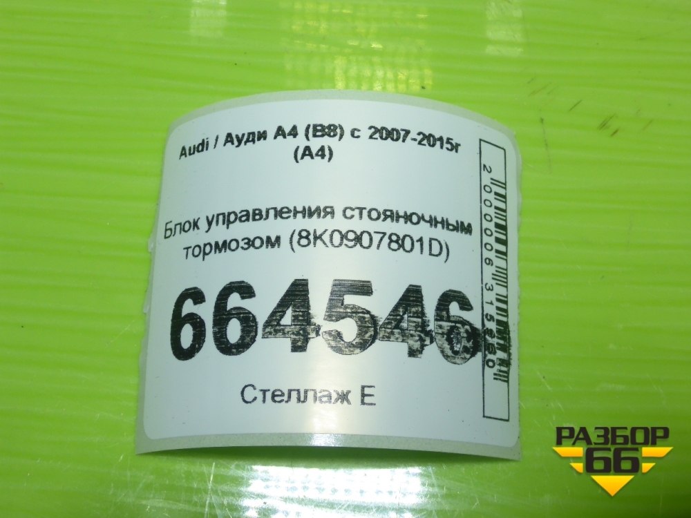Блок управления стояночным тормозом (8K0907801D) для Audi A4 (В8) с 2007-2015г (А4) в Москве