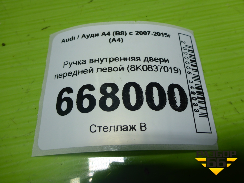 Ручка внутренняя двери передней левой (8K0837019) для Audi A4 (В8) с 2007-2015г (А4) в Москве