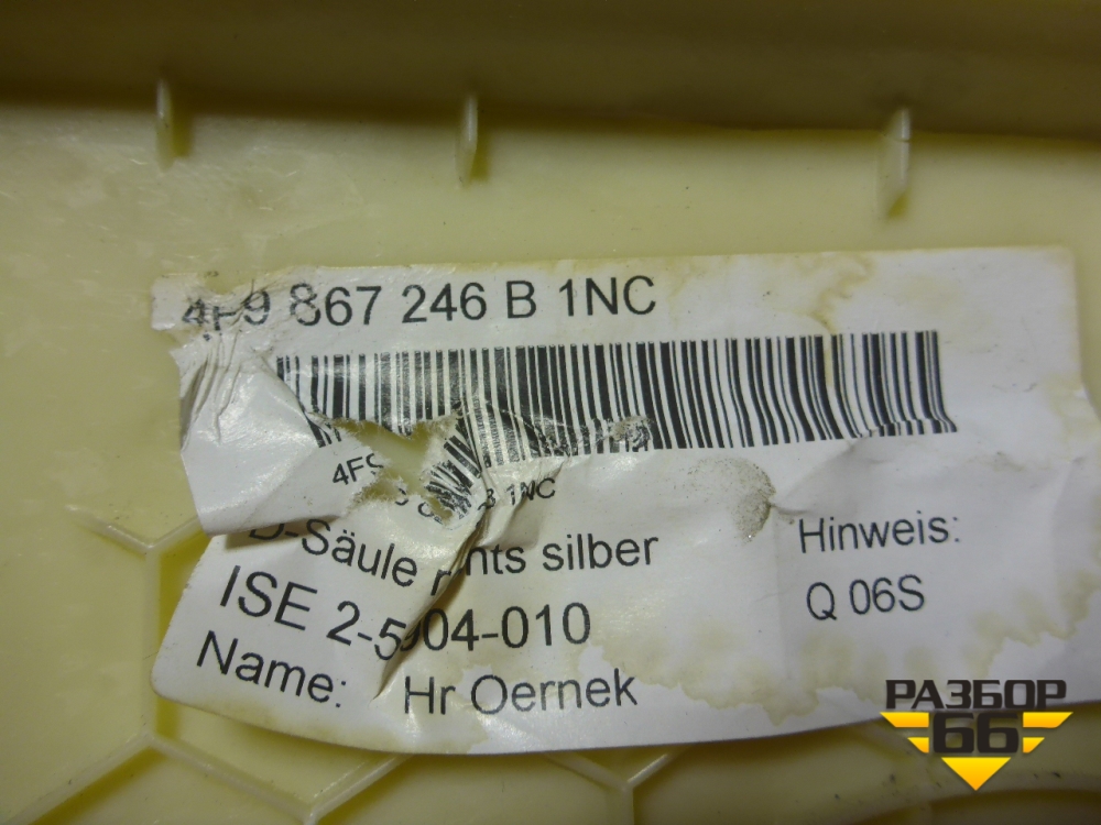 Обшивка стойки задняя верхняя правая (универсал) (4F9867246B) для Audi A6 (C6) с 2004-2011г (А6) в Москве