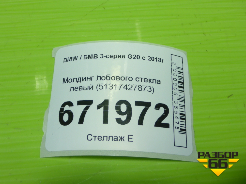 Молдинг лобового стекла левый (51317427873) для BMW 3-серия G20 с 2018г в Москве