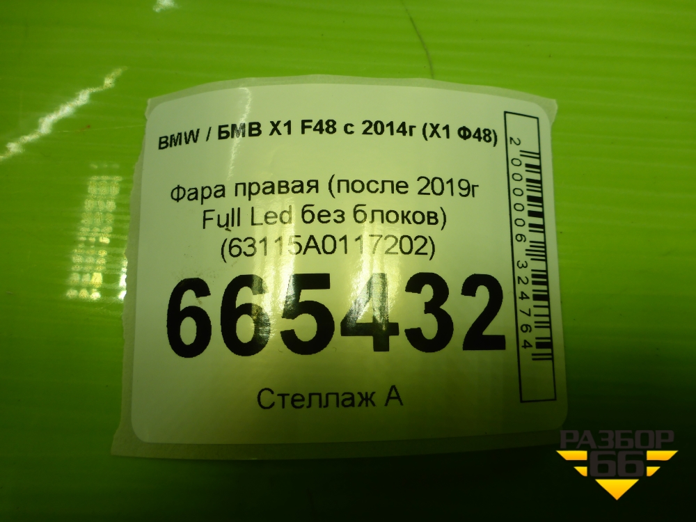 Фара правая (после 2019г Full Led без блоков) (63115A0117202) для BMW X1 F48 с 2014г (Х1 Ф48) в Москве