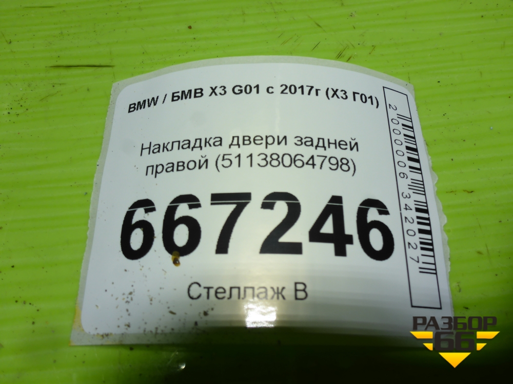 Накладка двери задней правой (51138064798) для BMW X3 G01 с 2017г (Х3 Г01) в Москве