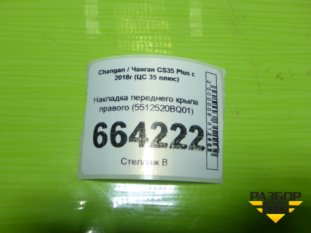 Накладка переднего крыла правого (5512520BQ01) для Changan CS35 Plus с 2018г (ЦС 35 плюс) в Москве