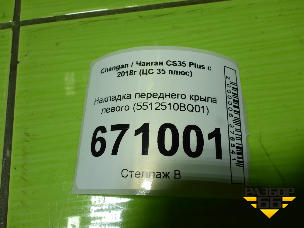 Накладка переднего крыла левого (5512510BQ01) для Changan CS35 Plus с 2018г (ЦС 35 плюс) в Москве
