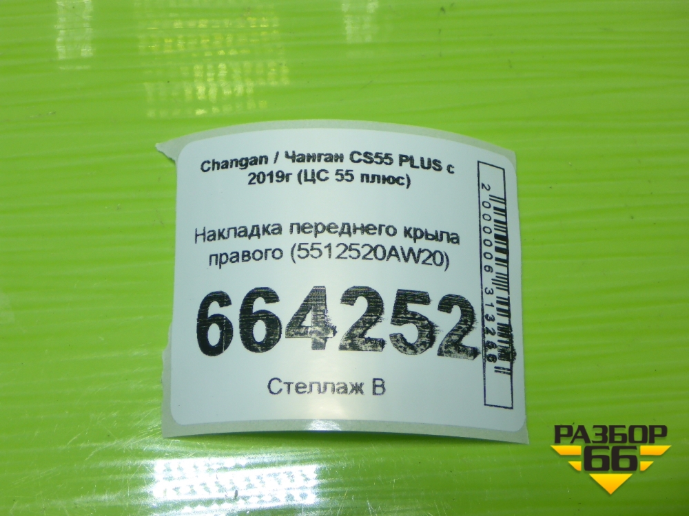 Накладка переднего крыла правого (5512520AW20) для Changan CS55 PLUS с 2019г (ЦС 55 плюс) в Москве