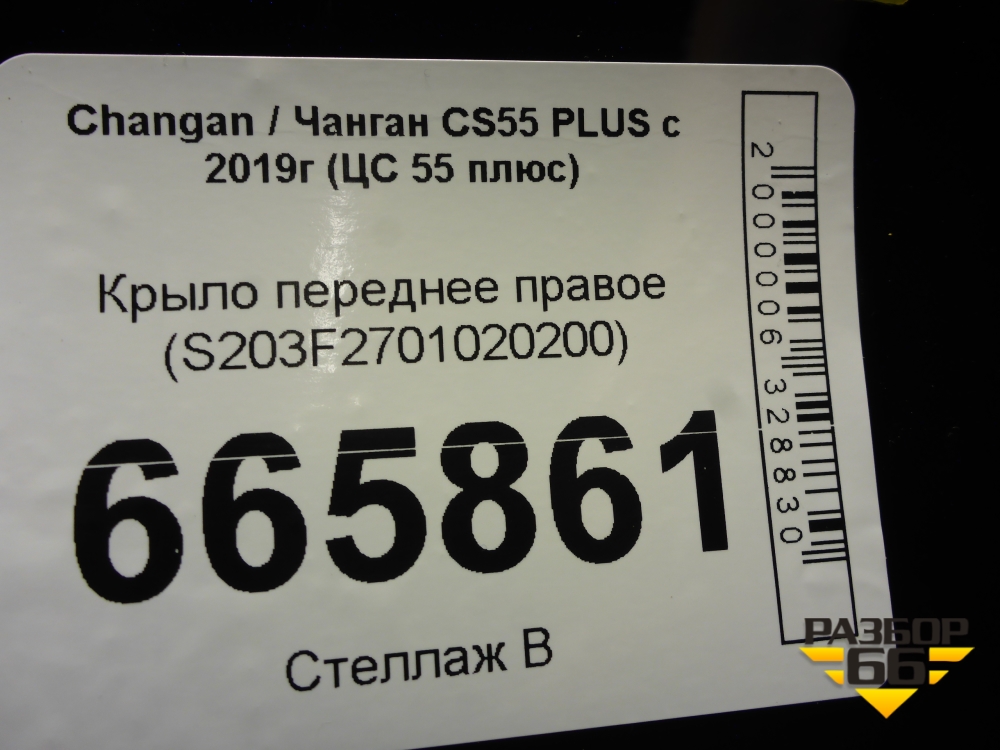 Крыло переднее правое (S203F2701020200) для Changan CS55 PLUS с 2019г (ЦС 55 плюс) в Москве