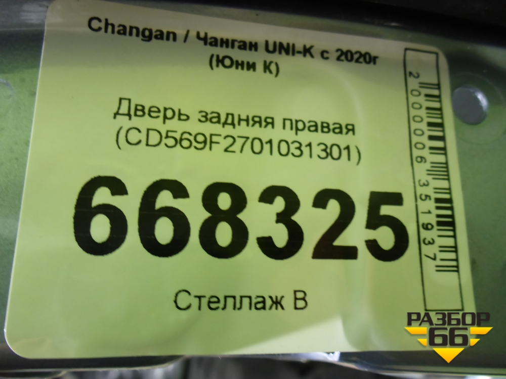 Дверь задняя правая (CD569F2701031301) для Changan UNI-K с 2020г (Юни К) в Москве