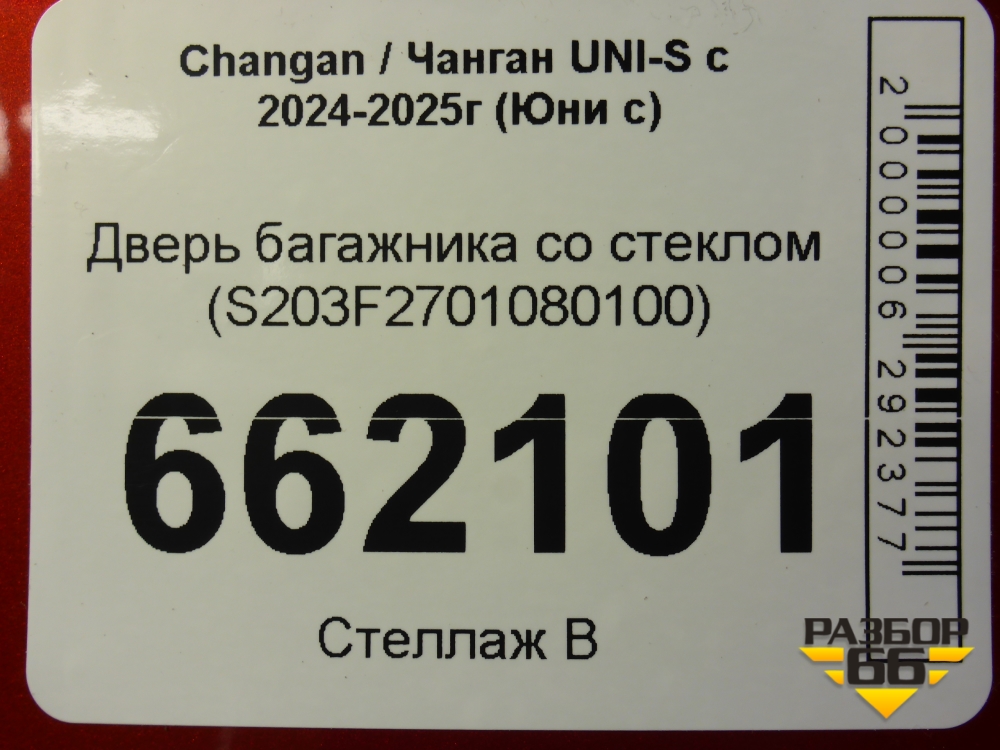 Дверь багажника со стеклом (S203F2701080100) для Changan UNI-S с 2024-2025г (Юни с) в Москве