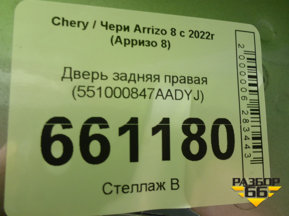 Дверь задняя правая (551000847AADYJ) для Chery Arrizo 8 с 2022г (Арризо 8) в Москве
