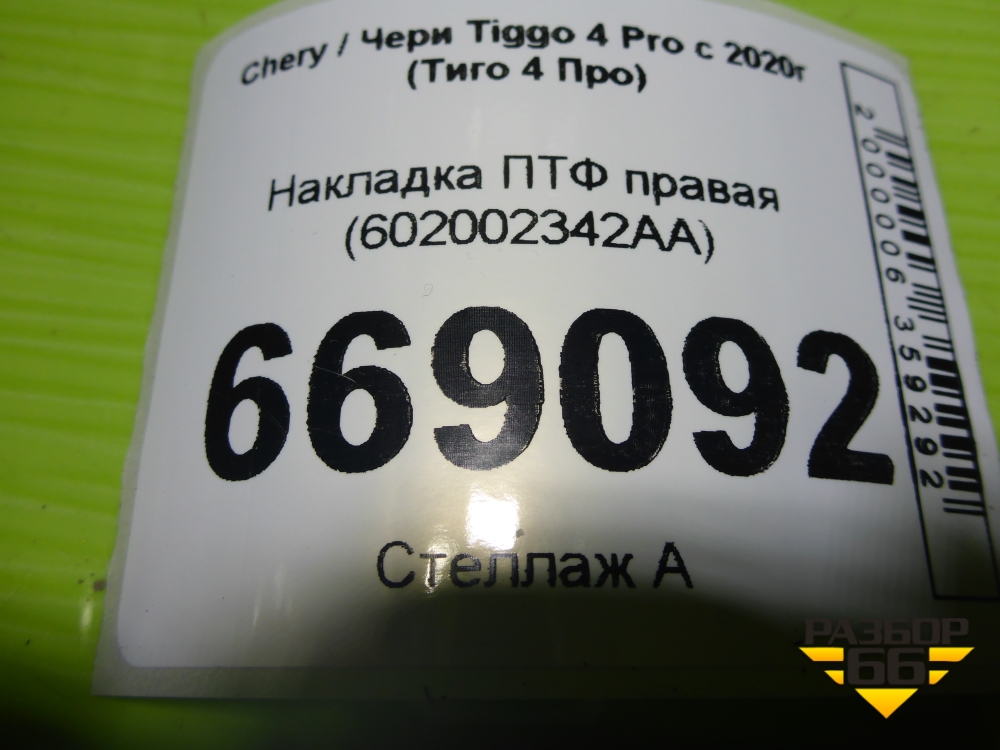 Накладка ПТФ правая (602002342AA) для Chery Tiggo 4 Pro с 2020-2025г (Тиго 4 Про) в Москве
