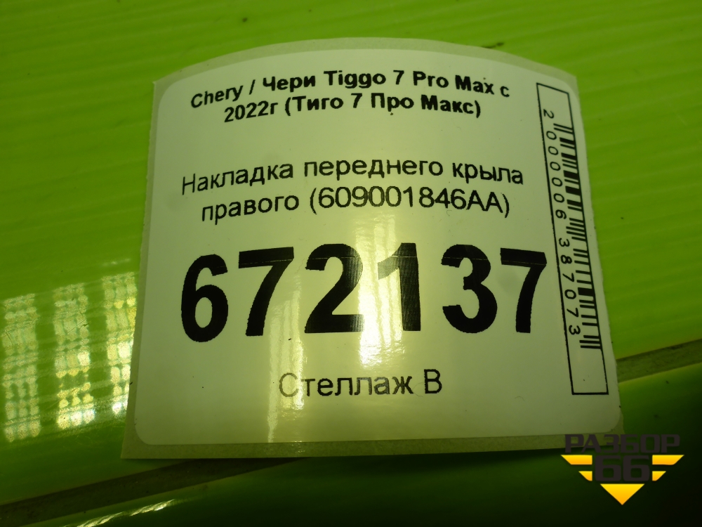 Накладка переднего крыла правого (609001846AA) для Chery Tiggo 7 Pro Max с 2022г (Тиго 7 Про Макс) в Москве