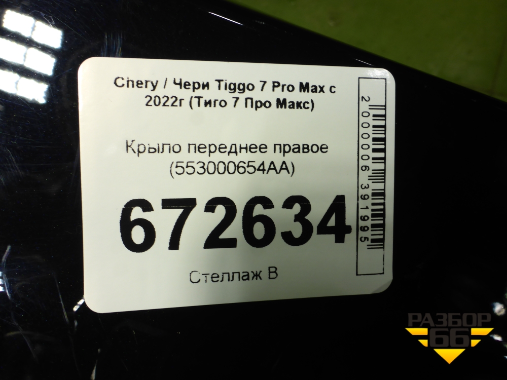 Крыло переднее правое (553000654AA) для Chery Tiggo 7 Pro Max с 2022г (Тиго 7 Про Макс) в Москве
