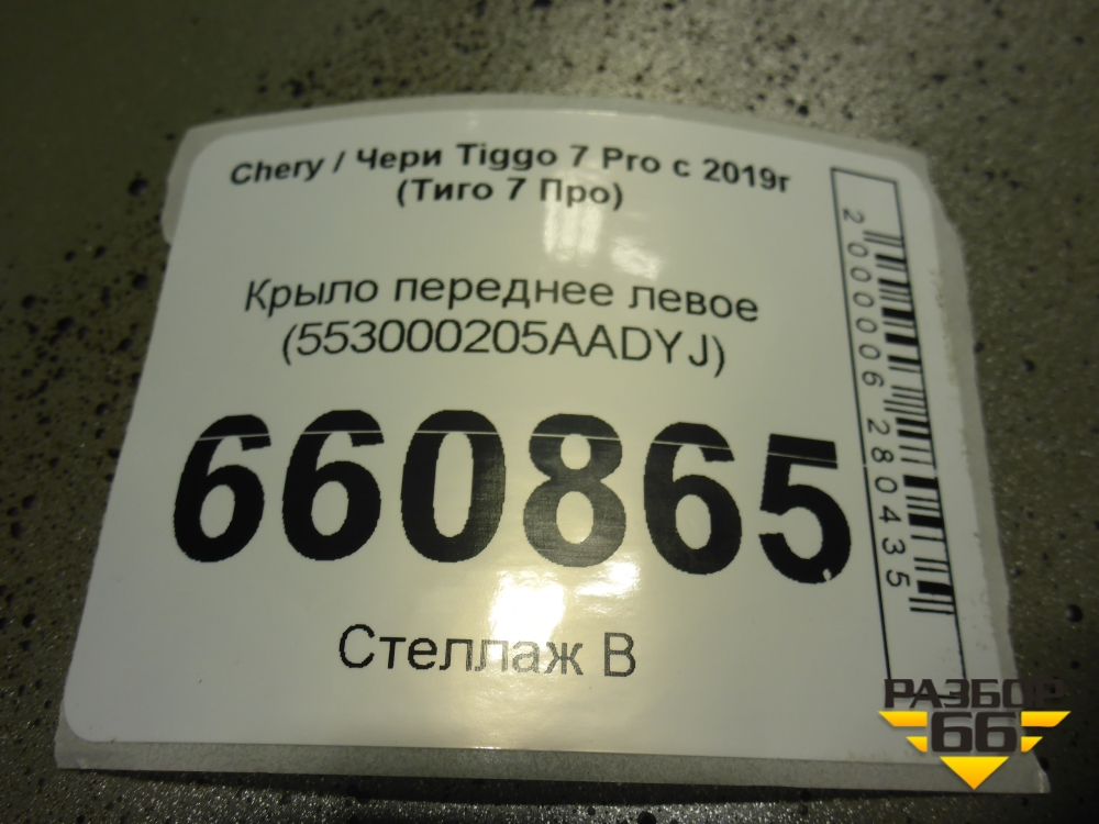 Крыло переднее левое (553000205AADYJ) для Chery Tiggo 7 Pro с 2019г (Тиго 7 Про) в Москве
