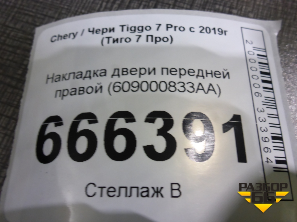 Накладка двери передней правой (609000833AA) для Chery Tiggo 7 Pro с 2019г (Тиго 7 Про) в Москве