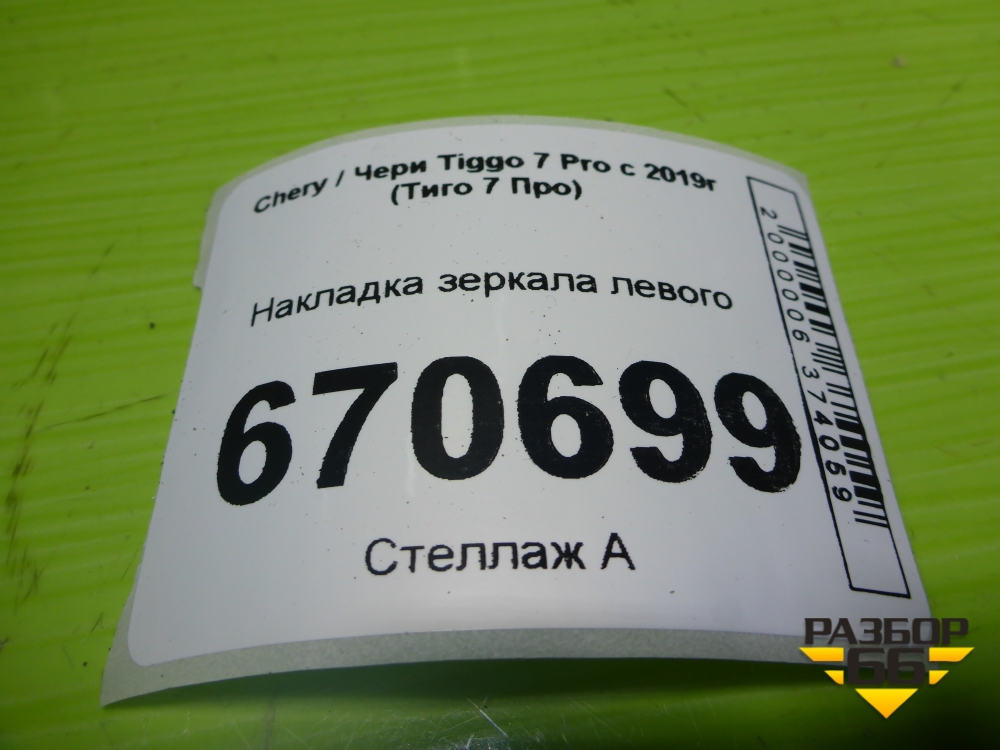 Накладка зеркала левого (601000438AA) для Chery Tiggo 7 Pro с 2019г (Тиго 7 Про) в Москве