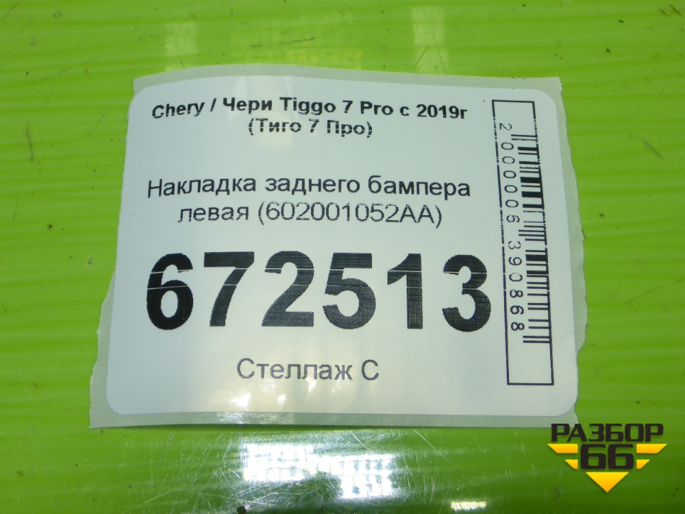Накладка заднего бампера левая (602001052AA) для Chery Tiggo 7 Pro с 2019г (Тиго 7 Про) в Москве