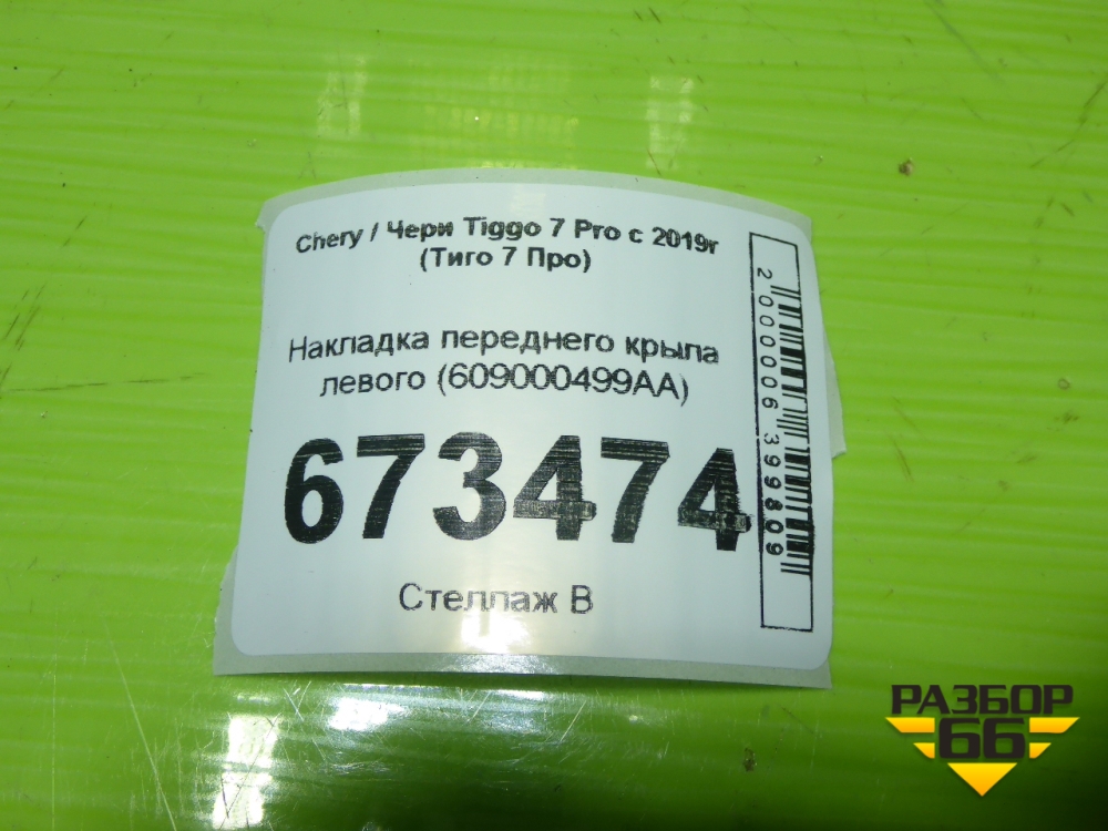 Накладка переднего крыла левого (609000499AA) для Chery Tiggo 7 Pro с 2019г (Тиго 7 Про) в Москве