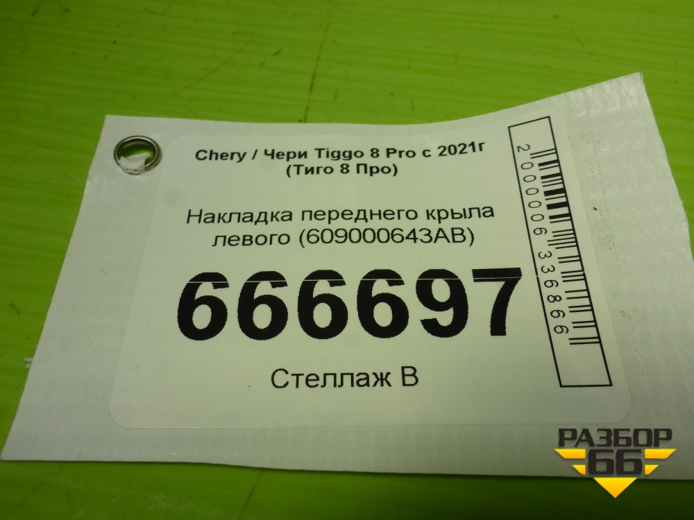 Накладка переднего крыла левого (609000643AB) для Chery Tiggo 8 Pro с 2021г (Тиго 8 Про) в Москве
