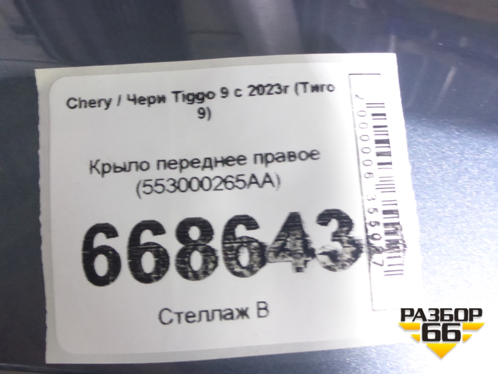 Крыло переднее правое (553000265AA) для Chery Tiggo 9 с 2023г (Тиго 9) в Москве