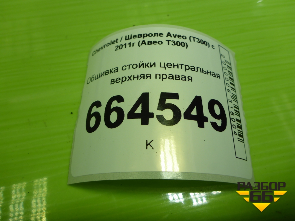 Обшивка стойки центральная верхняя правая (95037501) для Chevrolet Aveo (Т300) с 2011г (Авео Т300) в Москве