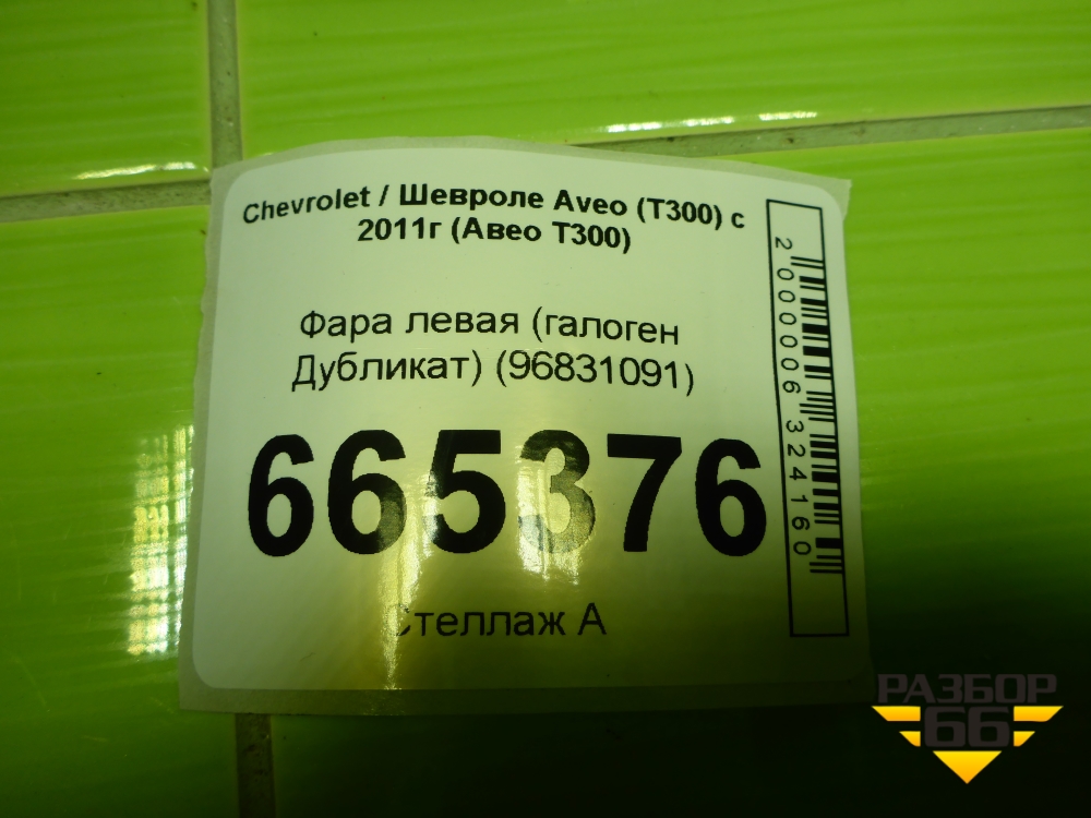 Фара левая (галоген Дубликат) (96831091) для Chevrolet Aveo (Т300) с 2011г (Авео Т300) в Москве
