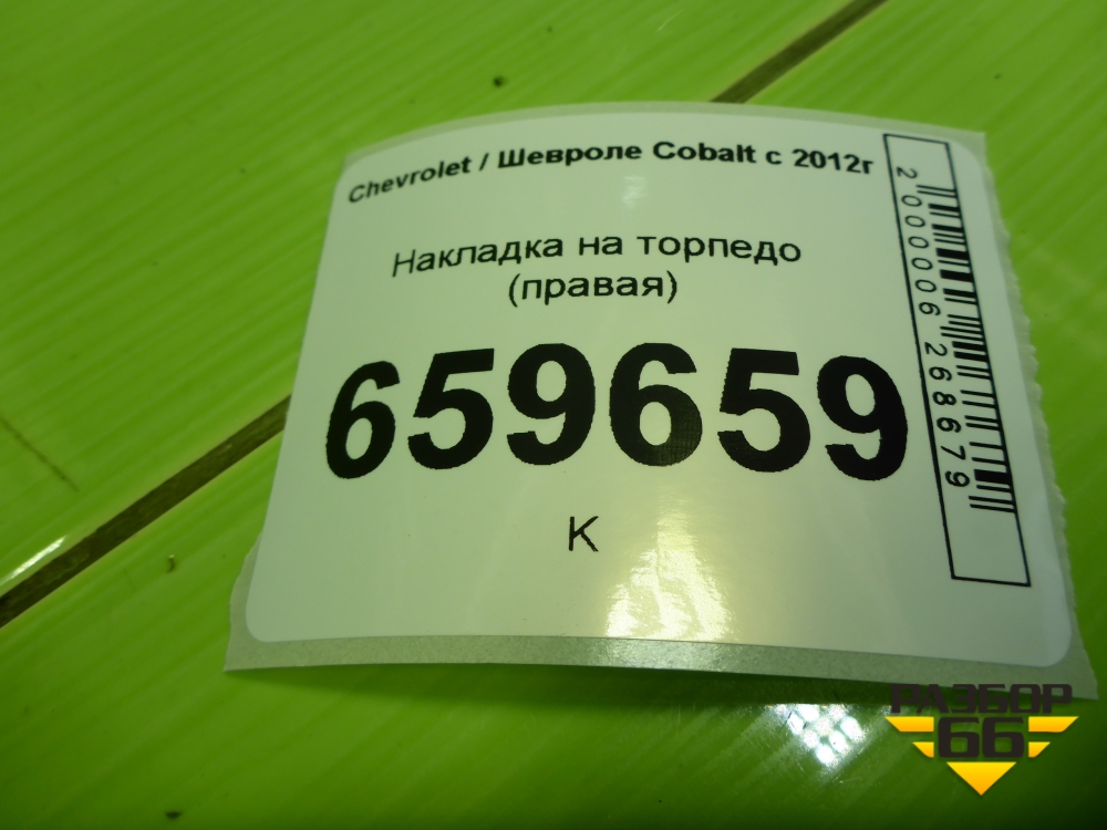 Накладка на торпедо (правая) для Chevrolet Cobalt с 2012г (Кобальт) в Москве