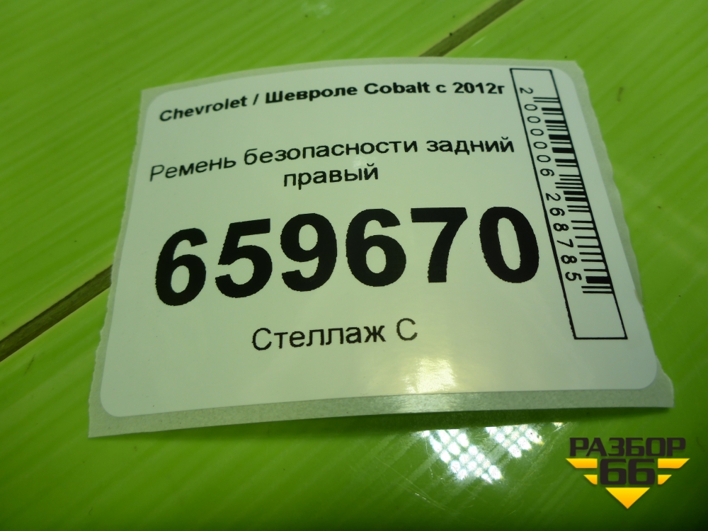 Ремень безопасности задний правый (52028429) для Chevrolet Cobalt с 2012г (Кобальт) в Москве