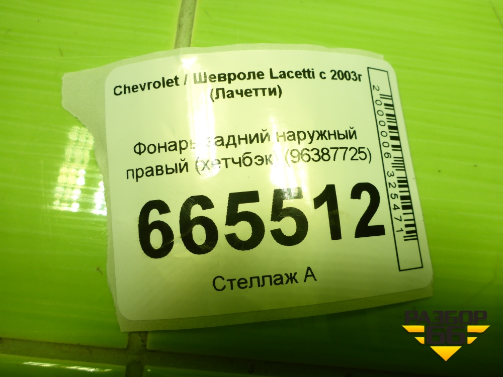 Фонарь задний наружный правый (хетчбэк) (96387725) для Chevrolet Lacetti с 2003г (Лачетти) в Москве