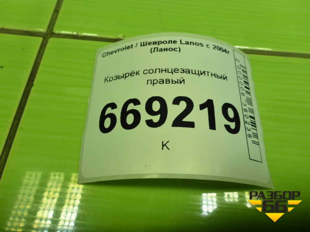 Козырёк солнцезащитный правый для Chevrolet Lanos с 2004г (Ланос) в Москве