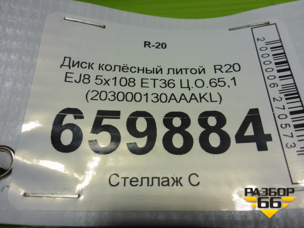 Диск колёсный литой R20 EJ8 5x108 ET36 Ц.О.65,1 (203000130AAAKL) в Москве