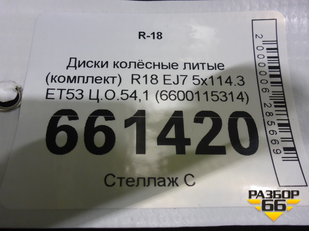 Диски колёсные литые (комплект) R18 EJ7 5x114.3 ET53 Ц.О.54,1 (6600115314) в Москве