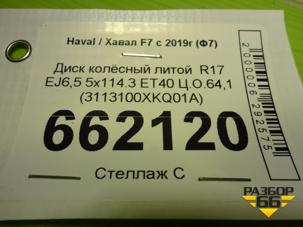 Диск колёсный литой R17 EJ6,5 5x114.3 ET40 Ц.О.64,1 (3113100XKQ01A) в Москве