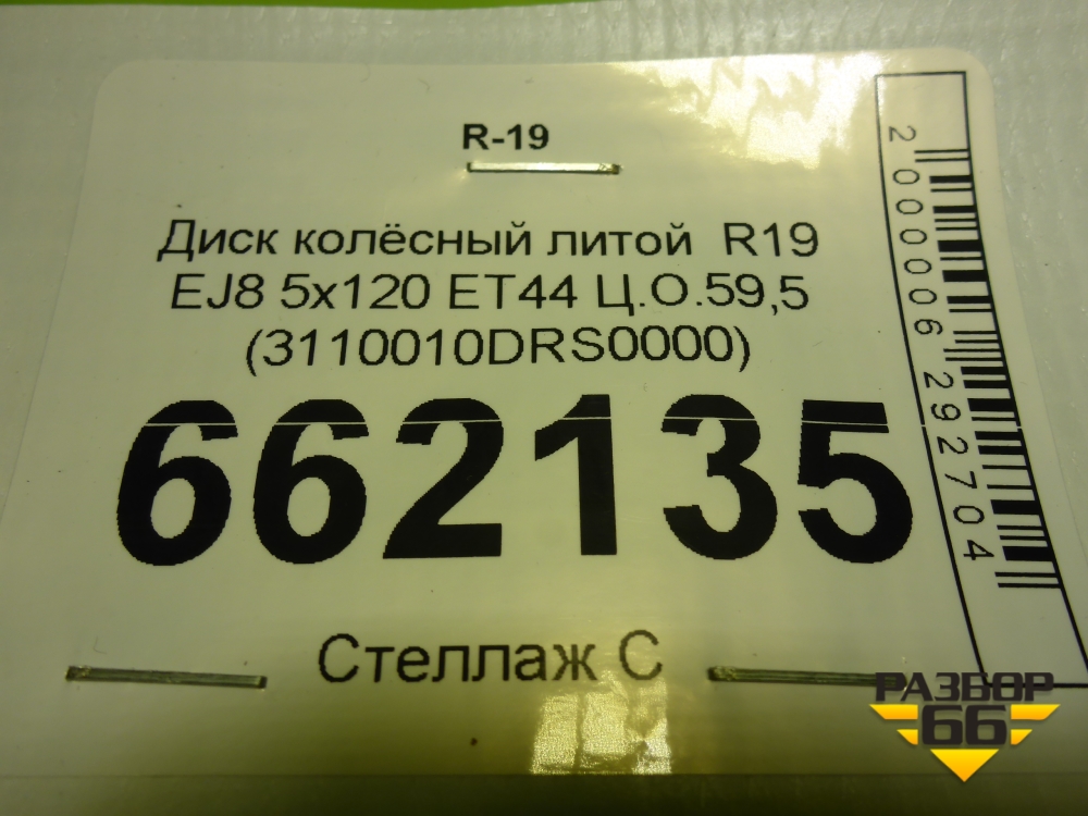 Диск колёсный литой R19 EJ8 5x120 ET44 Ц.О.59,5 (3110010DRS0000) в Москве