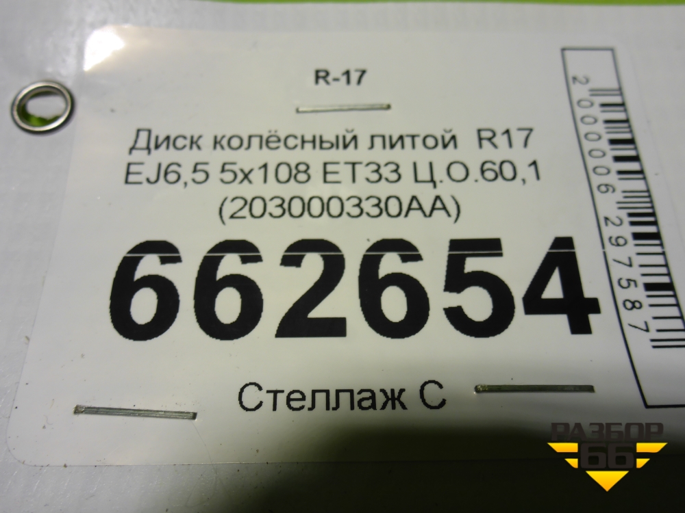 Диск колёсный литой R17 EJ6,5 5x108 ET33 Ц.О.60,1 (203000330AA) в Москве