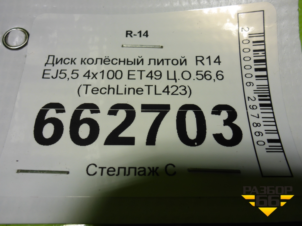 Диск колёсный литой R14 EJ5,5 4х100 ET49 Ц.О.56,6 (TechLineTL423) в Москве
