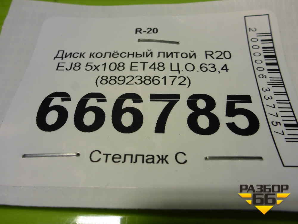 Диск колёсный литой R20 EJ8 5x108 ET48 Ц.О.63,4 (8892386172) в Москве