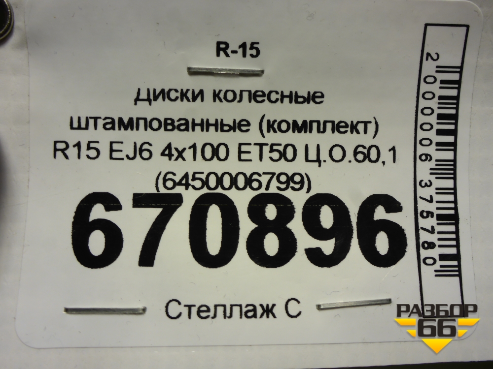 Диски колёсные штампованные (комплект) R15 EJ6 4х100 ET50 Ц.О.60,1 (6450006799) в Москве