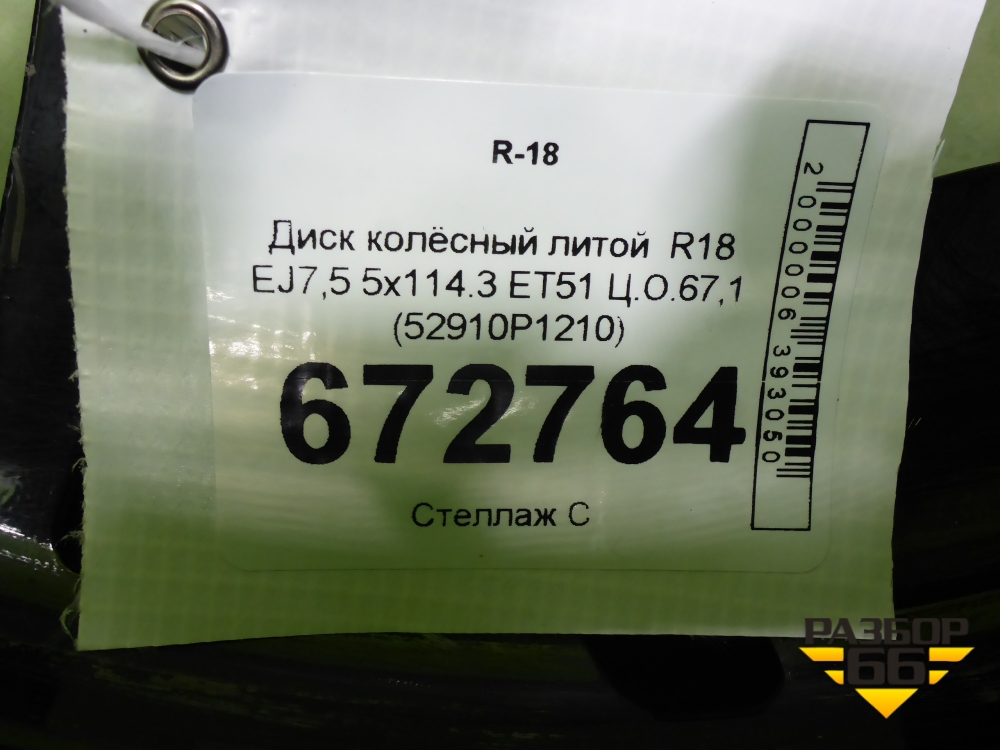 Диск колёсный литой R18 EJ7,5 5x114.3 ET51 Ц.О.67,1 (52910P1210) в Москве