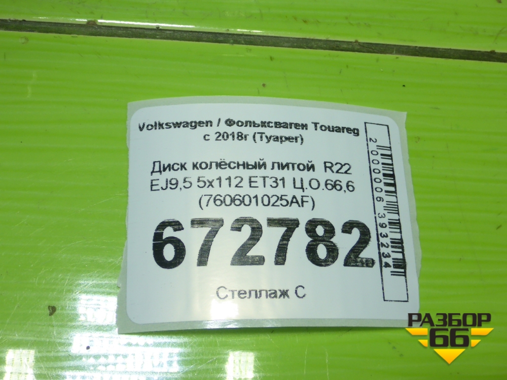 Диск колёсный литой R22 EJ9,5 5x112 ET31 Ц.О.66,6 (760601025AF) в Москве