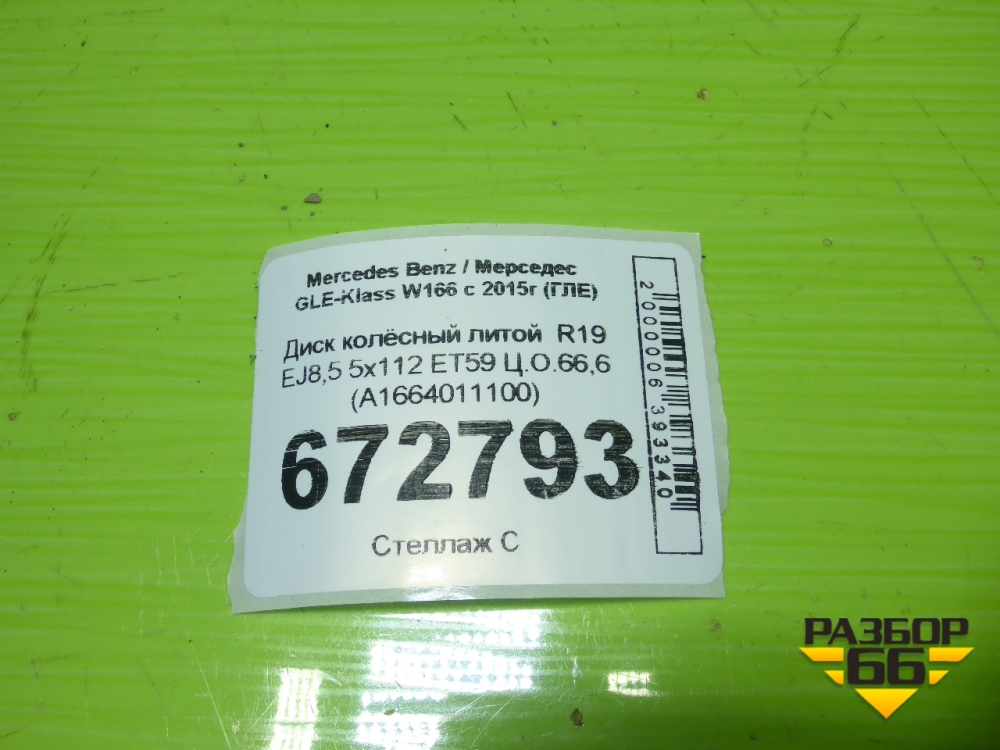Диск колёсный литой R19 EJ8,5 5x112 ET59 Ц.О.66,6 (A1664011100) в Москве