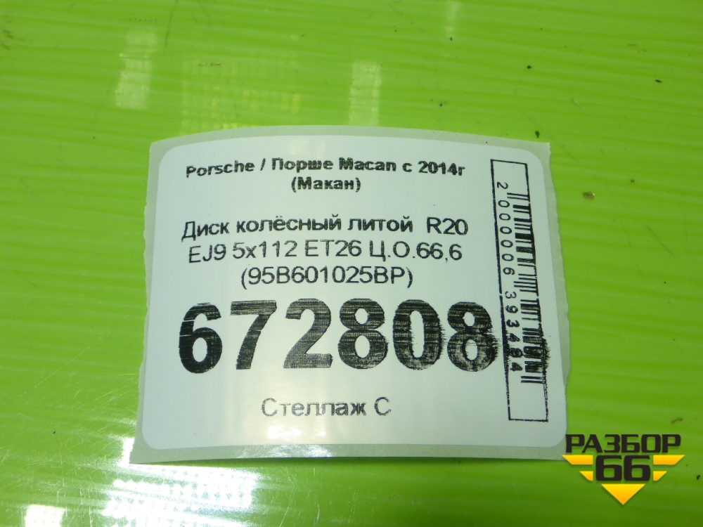 Диск колёсный литой R20 EJ9 5x112 ET26 Ц.О.66,6 (95B601025BP) в Москве