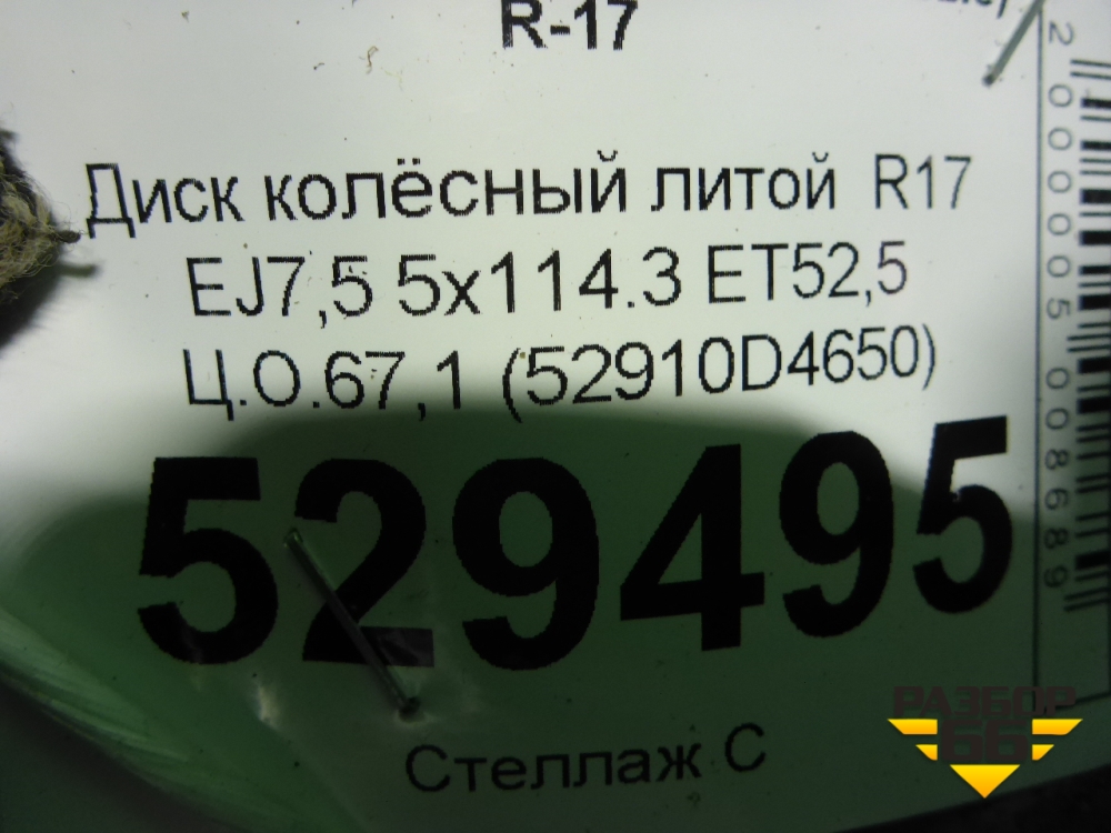 Диск колёсный литой R17 EJ7,5 5x114.3 ET52,5 Ц.О.67,1 (52910D4650)