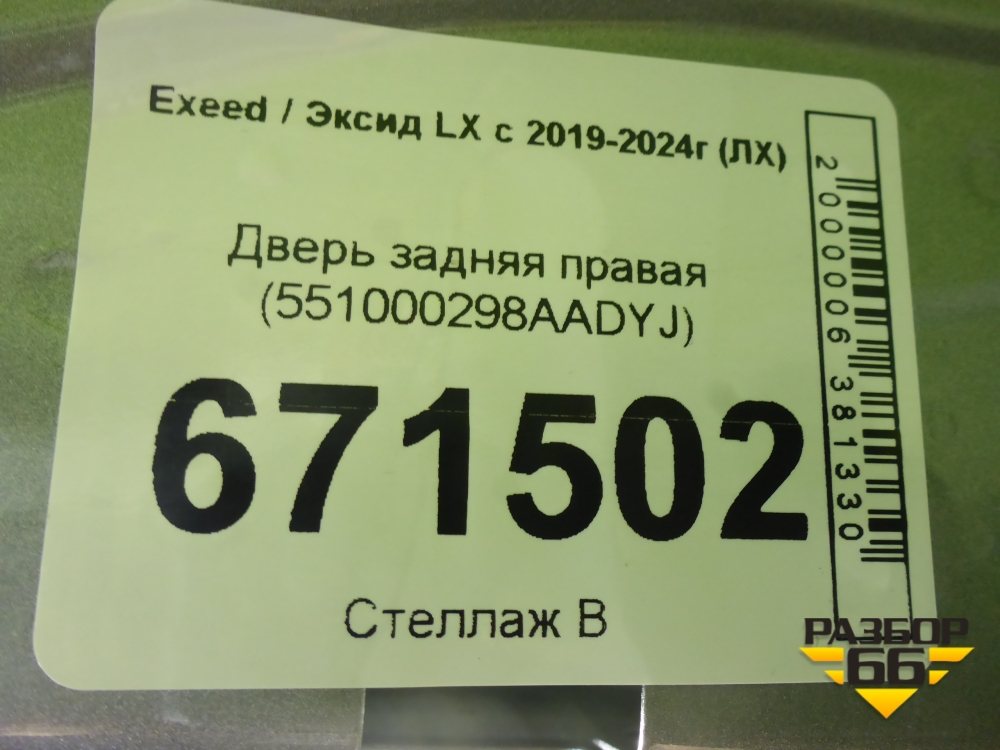Дверь задняя правая (551000298AADYJ) для Exeed LX с 2019-2024г (ЛХ) в Москве